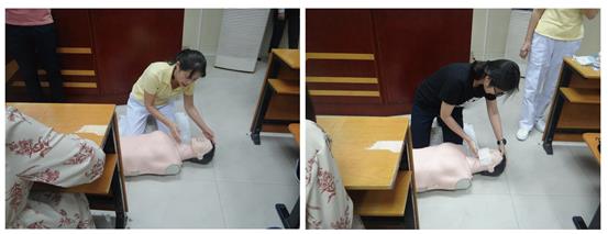 随后,校医院何丽虹医生在现场开展急救知识培训,手把手教授心肺复苏知识。何丽虹从发现情况、判断病情讲起,详尽地讲解了在使用心肺复苏急救技术的过程中的注意事项、操作步骤和方法。演示结束后,何丽虹医生邀请了在场同学利用人体模型进行现场操作,并在操作过程中给予了进一步的指导。教学结束后,同学们纷纷表示基本掌握了急救的方法,尤其是对急救过程中需要注意的细节有了进一步的理解和重视。