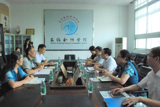 9月10日上午,我校校长石佑启在研究生院院长袁泉、发展规划处处长王则唐、人事处处长谢文新、校办副主任袁薇佳等陪同下,来我院检查新学期工作,学院领导班子成员参加会议。会上石佑启校长强调要按照“三高”来大力促进翻译学科的发展。