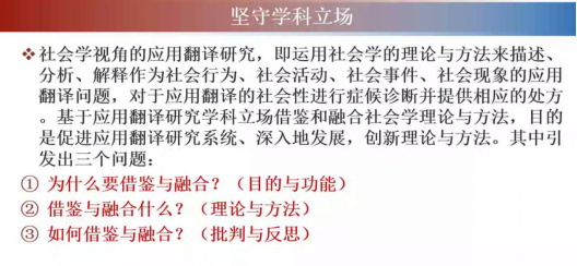 最后,傅教授对基于社会学视角的应用翻译研究做出总结。翻译的社会性是社会学视角应用研究的出发点,开展研究应该保持一份清醒,立足翻译研究学科发展,并在此基础上不断创新和反思。