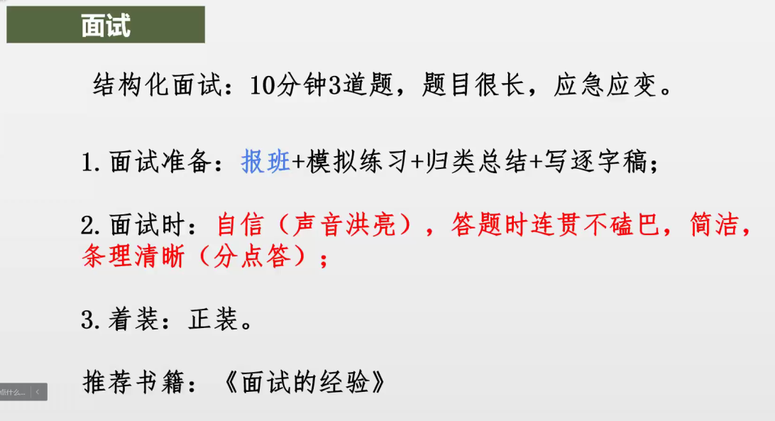 李蓝建议大家在面试准备阶段通过结合单位职能来预测出题分享,进行面试模拟,并邀请同学或老师帮助模拟,给予反馈。同时,面试时一定要结合自己的思考进行回答,不能只背模板,否则容易引起考官厌倦情绪。