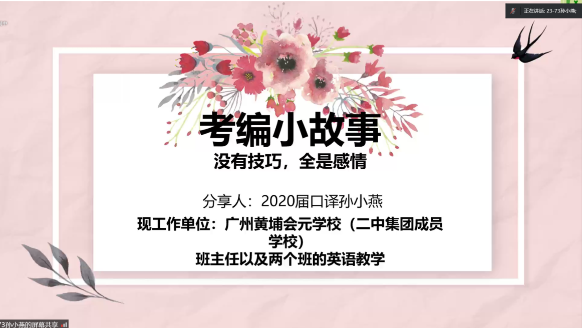 5月1日下午和5月2日下午,由广东外语外贸大学黄埔研究院主办,我院承办的“职引未来”职业分享沙龙顺利召开。此次沙龙邀请我院供职政府事业单位的7位优秀毕业生进行经验分享,活动由辅导员刘亮老师主持,学院党委书记李和民、副书记李海琳、团委书记张辉金、辅导员王晨老师及近150名同学参与了线上沙龙。