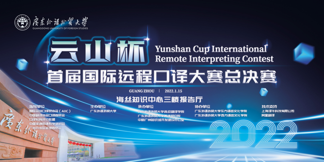 “云山杯”首届国际远程口译大赛总决赛将于2022年1月15日在广东外语外贸大学知识城校区举行。