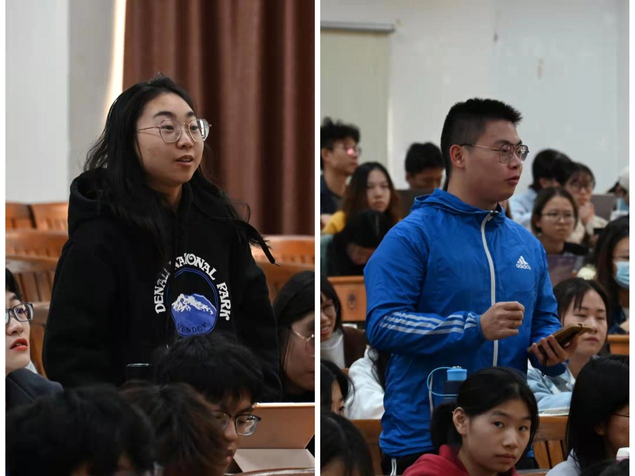 交流互动环节气氛热烈,同学们围绕如何选择译本、人工智能的冲击、多语言的学习等问题踊跃提问。黄建华教授指出,一是经典译本挑选可参考国家一级出版社,有质量保障;二是人工智能技术的到来对翻译者提供了更多元化的辅助工具,从而提出更高的要求;我们需要有勇气探索感兴趣的新领域,做开拓者和自我提升者;三是语言学习不贵多而贵精,要首先熟练掌握一门语言。