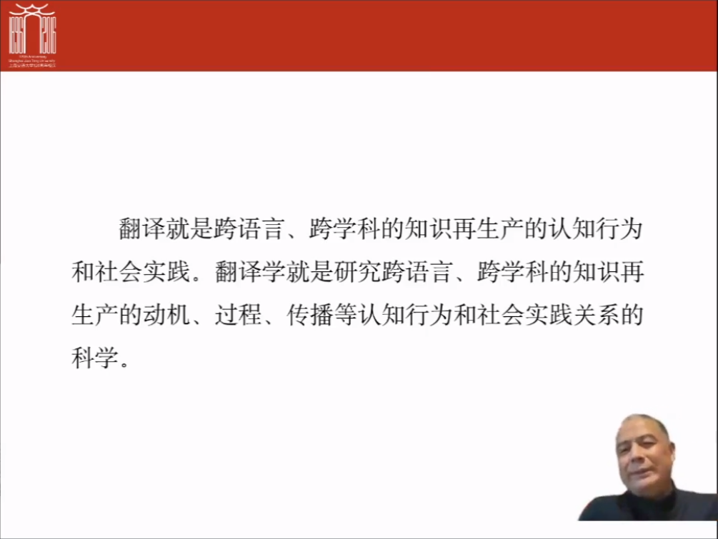 11月18日下午,由广东外语外贸大学人事处、教师发展中心主办、广东外语外贸大学高级翻译学院承办的著名教授论坛第524讲、岭南译学前沿讲座第229讲在腾讯会议室举行。上海交通大学外国语学院教授、《当代外语研究》主编杨枫应邀进行了主题为《鹊巢鸠占:翻译是文化还是知识?》的学术演讲。本次讲座由广东外语外贸大学高级翻译学院教授张保红主持,并在Bilibili平台同步直播,为高级翻译学院师生及广大翻译爱好者提供了学习与交流的平台。