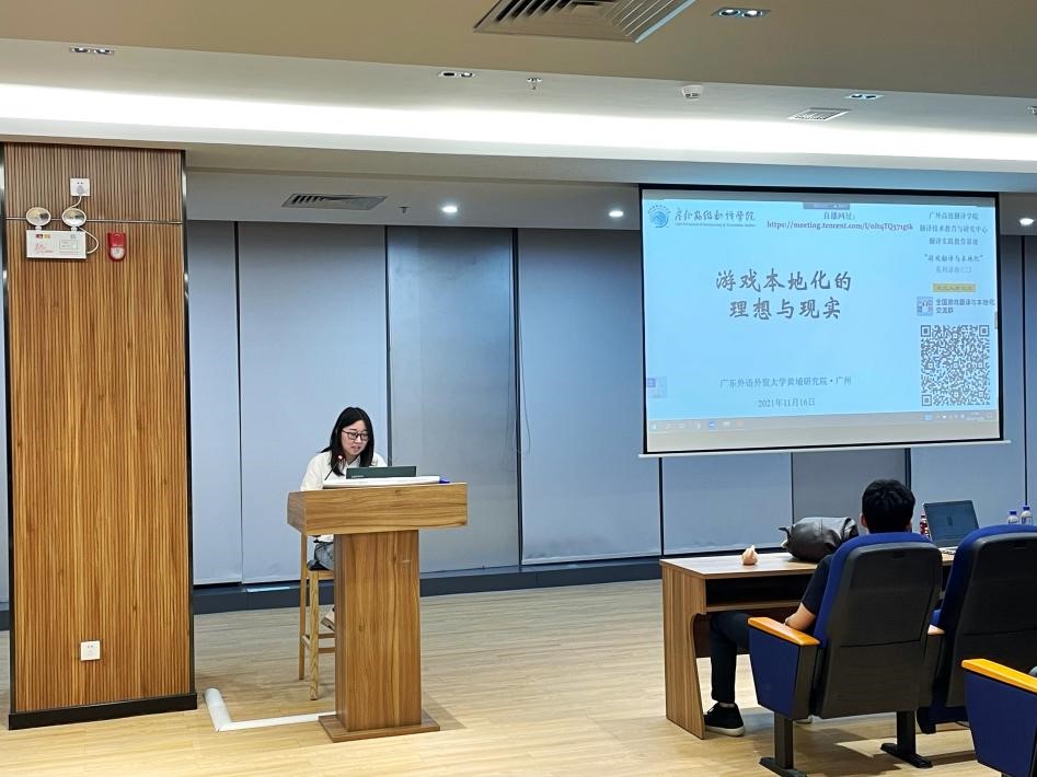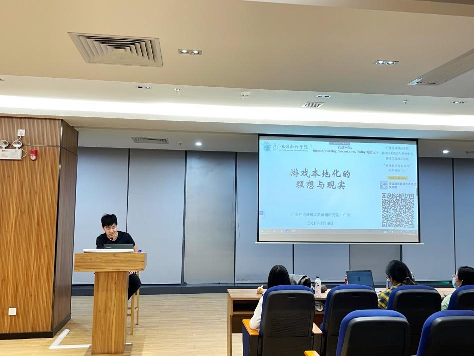 11月16日晚,“游戏翻译与本地化”系列讲座第二讲在我校黄埔研究院成功举办。本次讲座由我院翻译技术教育与研究中心和翻译实践教育基地联合主办,讲座邀请北京译禾信息技术有限公司的游戏翻译与本地化主创团队主讲。讲座采用线上线下相结合的方式,来自全国几十所高校的800多名师生和语言服务行业人士参与了线上讲座。