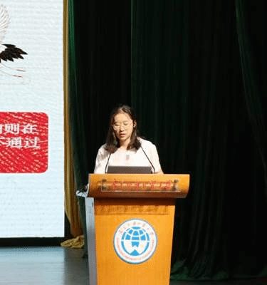 1902班张媛以“雾大时,看脚下”为题分享自己的成长经历。张媛大一迷茫时脚踏实地努力学习专业知识,多方了解翻译人才行业现状。积极思考、勇敢尝试,进而选择适合自己道路。她成功入选高级翻译学院英辩队和笔译队并在其中不断提升自己专业能力。她的发言激起了很多在场学生的共鸣。
