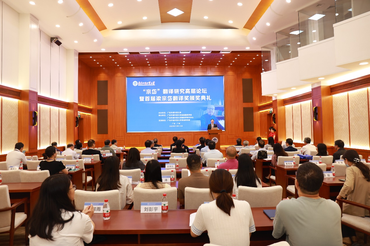 本网讯 11月3至5日,“宗岱”翻译研究高层论坛暨首届梁宗岱翻译奖颁奖典礼在我校白云山校区行政楼国际会议厅举行。本次论坛由我校主办,我校高级翻译学院、翻译学研究中心承办,黄埔研究院支持。论坛共吸引了百余名来自全国各大高校的专家学者、翻译家、研究生围绕梁宗岱先生的翻译风格、思想、精神展开深入研讨。