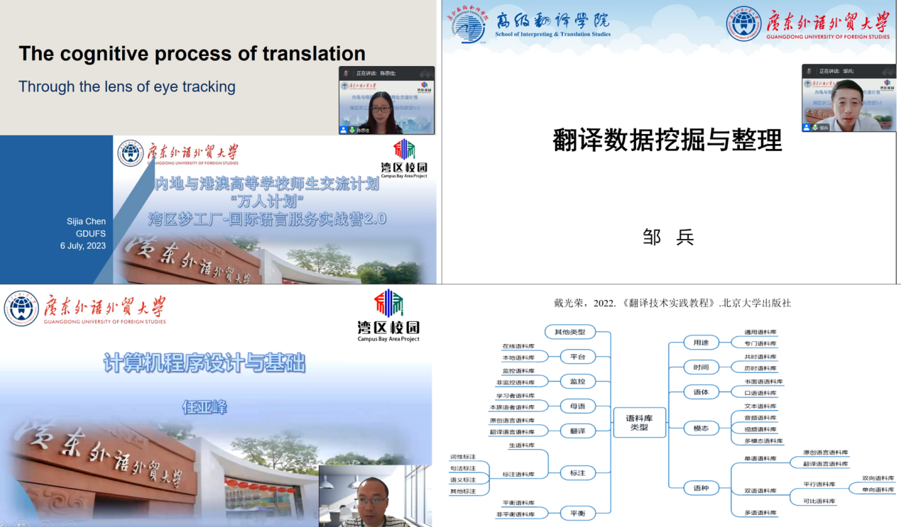 以加强粤港澳大湾区高等教育交流合作为宗旨,我校与港澳地区高校联合举办“湾区梦工厂-国际语言服务实战营2.0”项目。该项目根据粤港澳大湾区发展战略,采用基于多语种语言服务的线上线下语言服务教学模式,打破常规口笔译教学中“体系不清、内容碎片、方法局限”的瓶颈,结合国际语言服务产业现实与长远需求,打造立体在线学习社区,促进师生互动和生生互动,提升语言服务学习动力和教学效果。