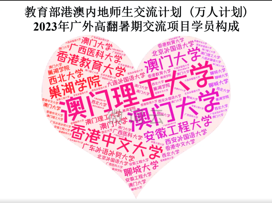 本次项目吸引了来自澳门理工大学、澳门大学、香港中文大学、香港教育大学、西北大学、广州大学、广西医科大学、巢湖大学、西南财经大学、西安外国语大学、大连外国语大学、四川外国语大学以及广东外语外贸大学等24所院校的73名本硕博学生。