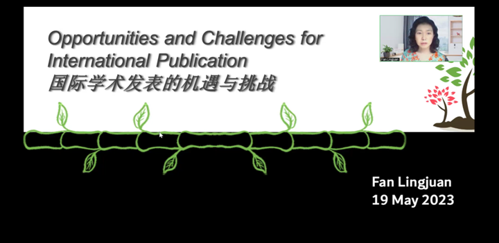 2023年5月19日下午3点,广东财经大学外国语学院范玲娟教授应我院邀请开展了题为“国际学术发表的机遇与挑战”的学术讲座,讲座吸引了我院众多翻译学硕士博士研究生和访问学者参加,高翻学院戴光荣教授主持讲座。
