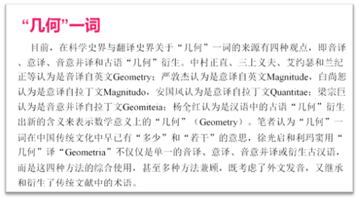 接着,张教授引经据典,通过考察徐光启《几何原本》译本中的用词,从独特的角度对这部译本给予高度评价,徐光启对数学原理的表述、论证值得我们探究。张教授指出每个人对“术语”一词的理解不尽相同,如自古以来学者们对“几何”“代数”“积分”等词的理解就大不相同,不同身份的学者可能会根据自己具备的知识背景对这些术语进行阐释和翻译,这体现的正是“术语”和“知识”之间的联系。