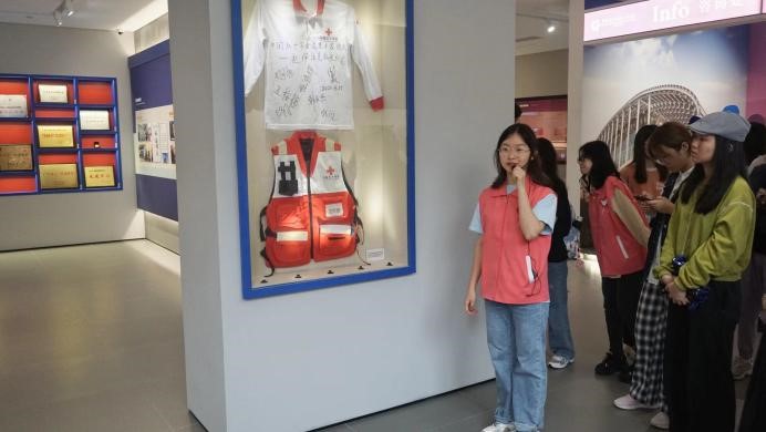 走进史馆,史馆墙面上罗列的广外各校区的大门将一所省重点高校的风范赫然呈现在同学们眼前。走下一旁的台阶,同学们望着上边用各国语言写下的欢迎字样,感受到了广外浓厚的国际化特色。在校史馆讲解员的讲解下,同学们了解了广外从广州外国语学院、广州对外贸易学院到如今的广东外语外贸大学的历史变迁;认识了梁宗岱、李筱菊、黄建华等名师大家;领略了广外人在广交会、亚运会等赛事活动上的卓越风采。最后,同学们一起观看了高翻学院宣传短片。