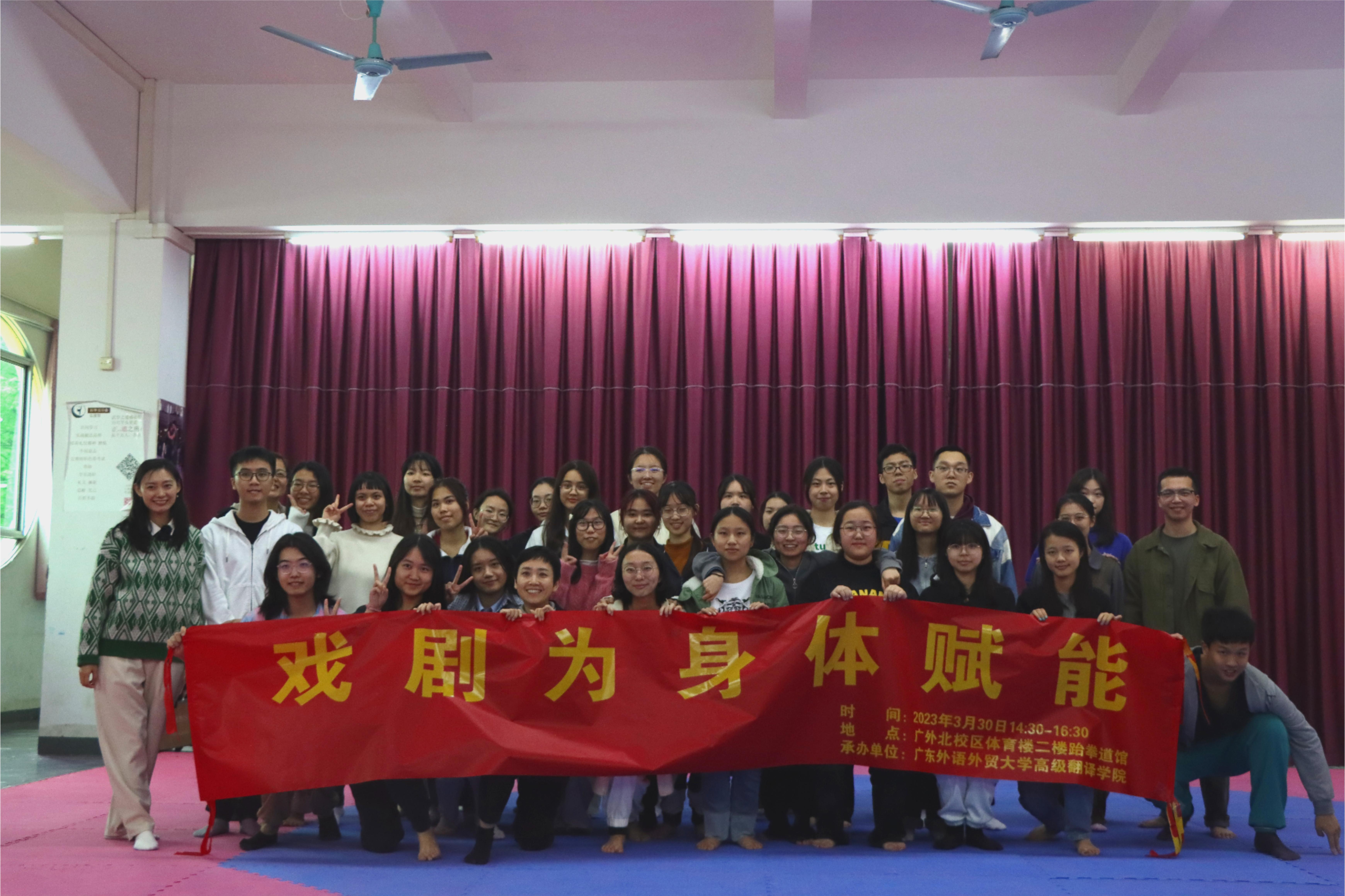 为加强学院心理服务体系建设,培育学生自尊自信,理性平和,积极向上的良好心态,3月30日下午高级翻译学院于体育楼举办“戏剧为身体赋能”主题活动。活动邀请到闻是教育创办人、《教育的觉醒》一书的作者、北京师范大学博士王瑞君老师一行,学院副院长王巍巍、党委副书记李政鸿、团委书记张辉金及40余名学生参加活动。
