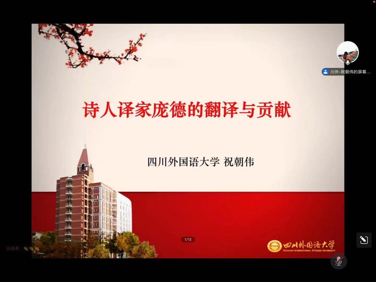 2022年12月20日,由广东外语外贸大学人事处、教师发展中心主办、广东外语外贸大学高级翻译学院承办的著名教授论坛第578讲、岭南译学前沿讲座第251讲在腾讯会议顺利举行。本讲特邀四川外国语大学副校长、嘉陵特聘教、博士生导师祝朝伟进行题目为《诗人译家庞德的翻译与贡献》的学术讲座,讲座由广东外语外贸大学高级翻译学院院长蓝红军教授主持。