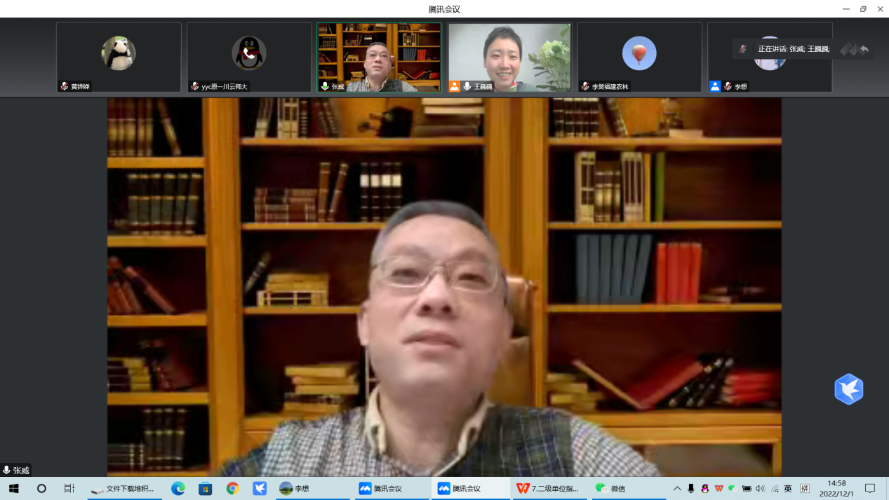 2022年12月1日下午,高级翻译学院于线上举办2022年度高层次项目申报指导会,北京外国语大学张威教授应邀针对国家社科项目申报作了题为《国家社科基金项目选题战略分析:以翻译研究为例》的报告。会议由高级翻译学院副院长王巍巍主持。