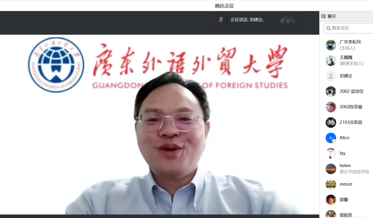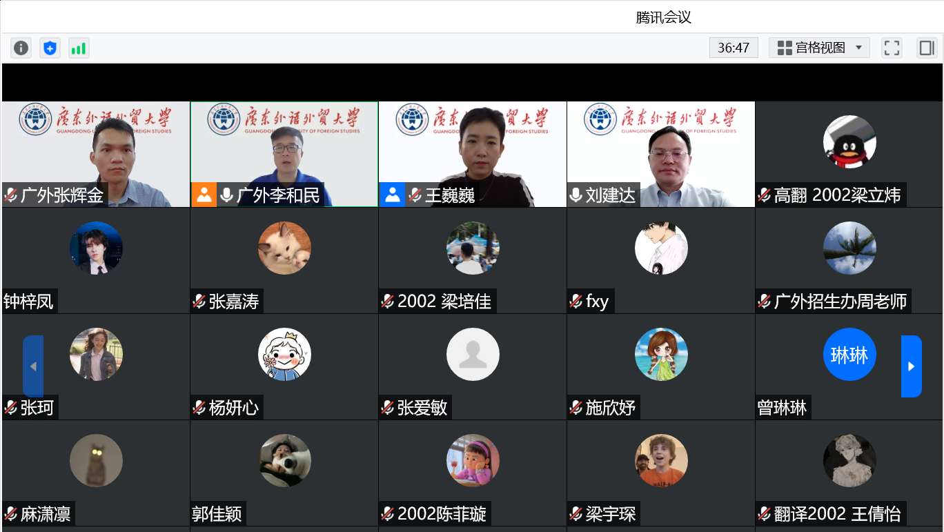 6月18日上午,为加强与重庆、江西、深圳部分重点高中的交流联系,我校举办线上招生宣讲活动。我校副校长刘建达、翻译学院副院长王巍巍、招生科科长周汉新等与各中学领导老师、高三考生及家长相聚云端,宣讲会由翻译学院党委书记李和民主持。