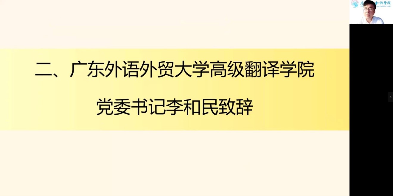 6月8日晚,我院翻译技术教育与研究中心、翻译实践教育基地联合主办“翻译与本地化技术”系列线上讲座,特邀2019届“翻译与本地化管理方向”研究生校友、广州斑斓科技有限责任公司总经理陈杲,主讲“翻译学习与研究中的语料检索、建库、应用”。我院党委书记李和民、教师邹兵出席捐赠仪式,来自我院以及全国多所高校的近200名师生参与线上讲座。