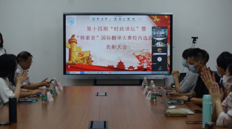 5月12日晚,由广外高级翻译学院举办的第十四期“时政译坛”暨第十六届“广外高翻杯”笔译点评大会完美落幕。学院党委书记李和民、副书记李海琳、系主任欧阳利锋、专任教师许勉君、邹兵、组织员、辅导员及参赛同学线上线下结合参与此次活动。