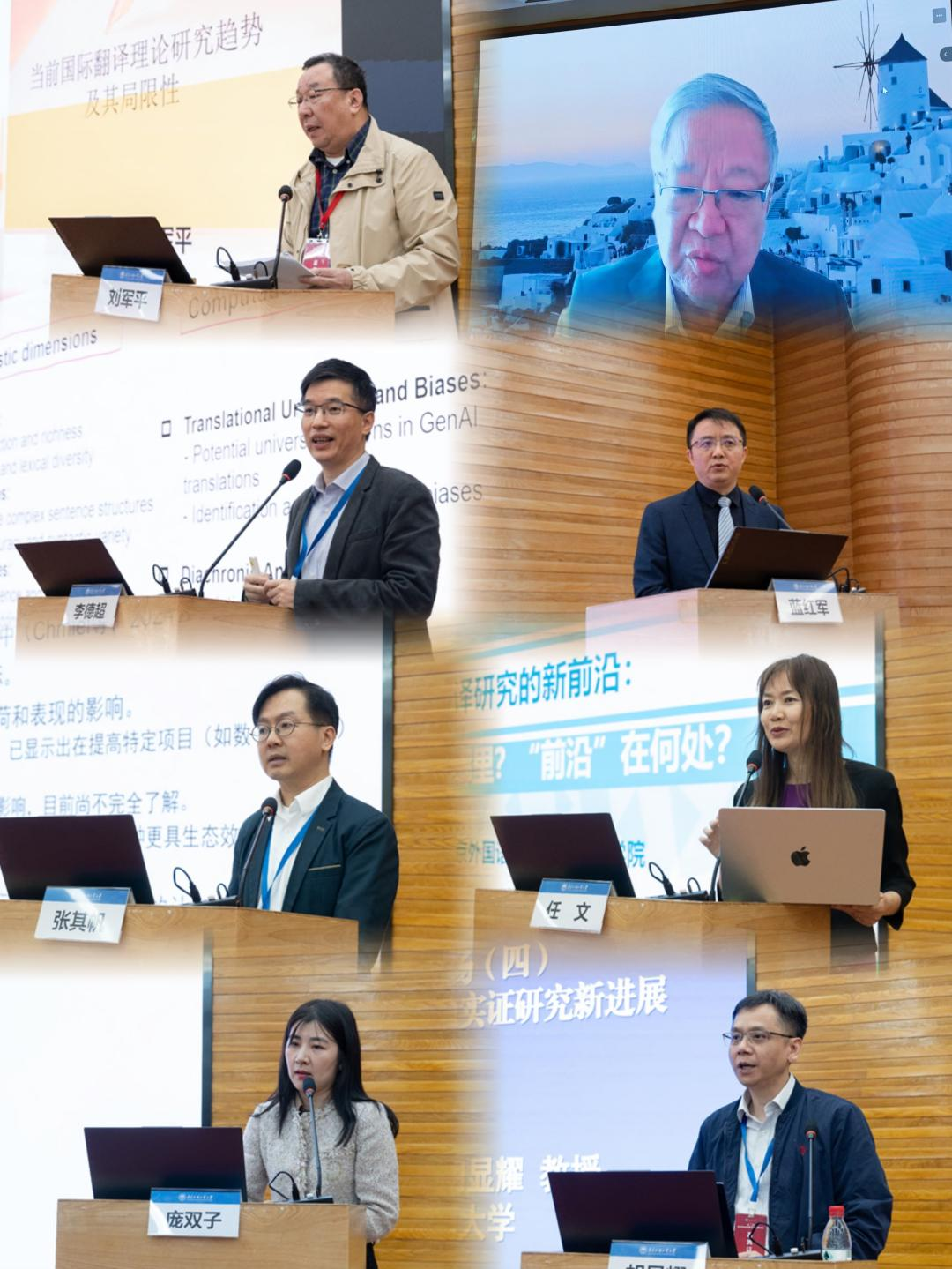 会议采取两人对谈的形式,16位专家学者分为8组,分别围绕翻译学不同主题研讨最新研究进展。武汉大学刘军平教授、我校王东风教授围绕翻译理论与其他学科理论融合等新趋势,指出有的研究忽视翻译本体研究等问题。香港理工大学李德超教授以生成式人工智能翻译为核心提出了新的研究方向,呼吁学界与实业结合,挖掘AI潜力;我校蓝红军教授从技术视域加以回应,指出AI深刻改变了诸多翻译研究元问题的视角。香港理工大学张其帆副教授讲解了多篇口译研究最新论文,特别谈到了手语口译这一常被忽视却有迫切需求的领域;北京外国语大学任文教授则由“新在哪里?前沿在何处?”切入,通过实践、教学、研究中的新概念、新话题、新角度等勾勒出当前国际口译研究的框架。翻译到底如何影响和改变了汉语?上海交通大学长聘副教授庞双子、西南大学胡显耀教授深入研究发现,翻译文本呈现受限语言特征和先导性、规范性,翻译对汉语的影响比语言接触更为显著。文学翻译始终是翻译领域的重中之重,上海外国语大学胡开宝教授基于语料库研究,从文本、译者、意识形态等多方面介绍了文学翻译研究的最新特点和存在问题,并展望了跨学科、多元统计、历时复合发展、语料库批评译学等方向;四川外国语大学胡安江教授则从近代“小说救国”谈起,最终落脚于方法论突破、受众与效果研究、跨学科研究等未来研究趋势。我校戴光荣教授、西安外国语大学黄立波教授集中研讨应用翻译研究,检视了理论与实践割裂、语料库数据难以实时更新等问题,提出了应用、可用、适用的应用翻译研究新三分法。杜伦大学郑冰寒教授、我校卢植教授关注AI对认知口译研究的深刻影响,指出机器已经深度介入口译过程,口译员角色已发生转变,需重新检视口译认知模型、建构研究方法。曲阜师范大学秦洪武教授指出要摆脱传统上过于依赖形式特征的翻译质量评估,转而借助大语言模型开发基于语义的量化评估;香港理工大学刘康龙副教授则补之以语料库翻译学、计量方法和AI技术引入的新进展。