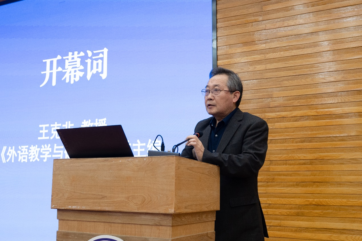 北京外国语大学讲席教授、《外语教学与研究》荣誉主编王克非致开幕词。他指出,改革开放后的数十年,我国翻译学研究走过了借鉴国际译学前沿理论到不断自我创新发展的过程,取得了丰硕研究成果。当前,人工智能时代的到来给翻译及翻译学研究带来了新机遇、新挑战,第三届翻译学国际前沿课题研讨会旨在梳理国际译学研究最新成果,密切关注学科研究前沿,向他者学习,以更好地实现自我发展,为开创翻译学研究新路提供中国方案。
