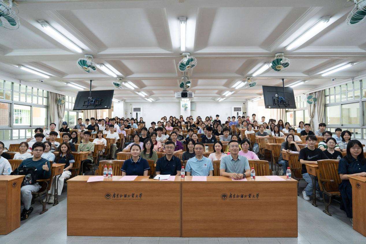 李政鸿副书记在总结中勉励全体新生要主动顺应时代发展,珍惜大学时光,树立明确目标、培养自主学习能力。他还特别以雷军2023年度“成长”演讲为例,鼓励同学们勇于挑战极限、善用学习方法,以优秀朋辈和前辈为榜样,不断追求卓越。他引用石书记在开学典礼上“太阳升起的地方都有广外人”的寄语,期待大家在课堂内外全情投入、不负韶华,终将在更广阔的世界舞台上绽放广外人的光芒。