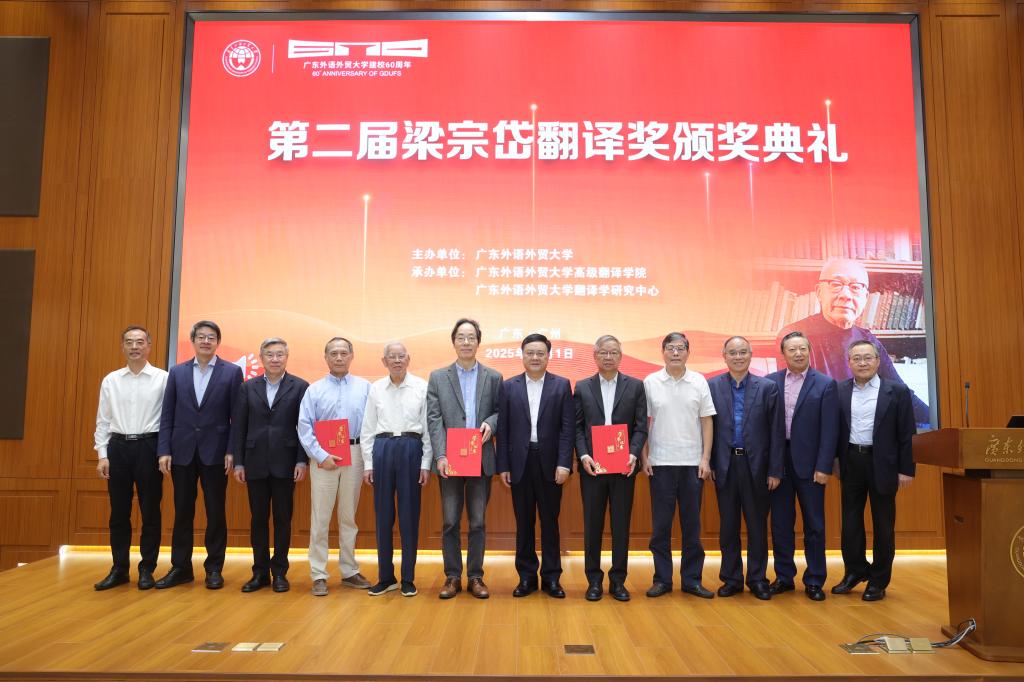 11月1日,由广东外语外贸大学主办,广东外语外贸大学高级翻译学院、翻译学研究中心承办的“第二届梁宗岱翻译奖颁奖典礼”在广州举行,余中先、王宁等9位翻译家、译学家获奖。