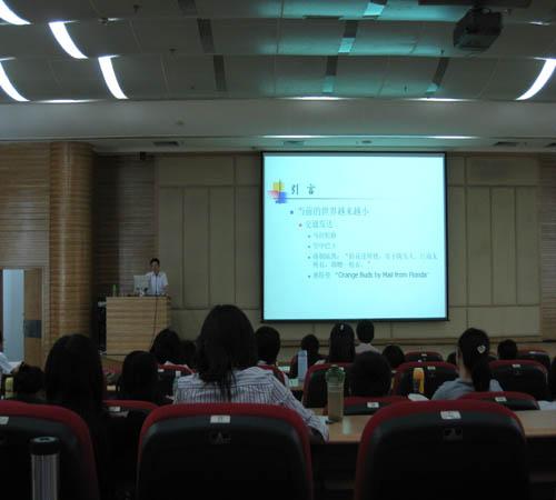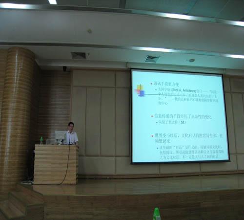 2009年4月28日下午两点半,图书馆多功能报告厅迎来了区沭教授的精彩讲座,题为“文化对话?文化身份?文化误读”。高翻学院院长余东教授,副院长莫爱屏教授以及学院师生参加了讲座。区教授将翻译融入到文化这个话题中,使高翻师生从不同的视角对翻译有了更深刻的理解。