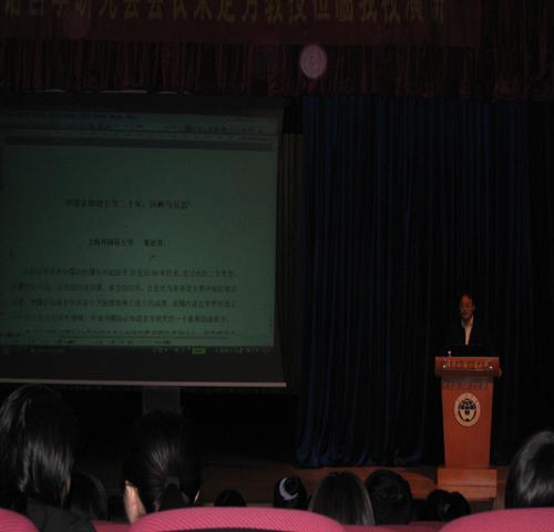 2008年12月18日晚7:00,中国认知语言学研究会会长,上海外国语大学教授,科研处处长束定芳在我校6教多功能报告厅为全校师生带来一场精彩的讲座。本次讲座是广外“著名教授论坛”第89讲,题目为“中国认知语言学二十年。”我院院长余东教授主持了本场讲座。我校各个学院的师生都慕名而来聆听此次讲座。