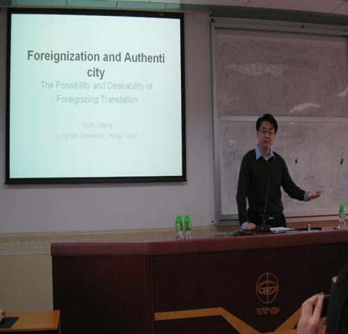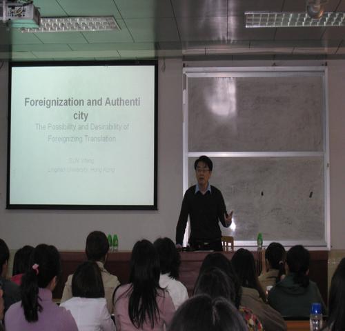 讲座一开始,孙教授首先结合了几个例子,指出真实性(authenticity)一词含义的模糊性,提出尽管翻译不可能做到完全的真实,但是 “真实性”总是翻译所追求的目标之一。而异化翻译,从理论上来说是最能体现翻译真实性的翻译策略,因为译介的目的,并不是去强化人们对于已知东西的认识,而是要使人们学习新的东西。