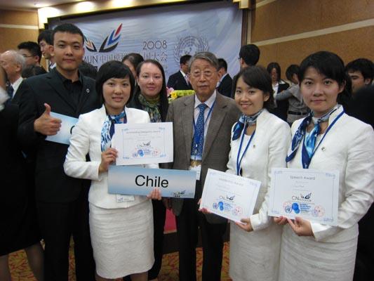 在刚刚结束的2008中国模拟联合国大会(CNMUN)中,由高翻学院2007级研究生王巍巍,赵南,张晋南,侯磊组成的广外模联代表队在美丽的厦门大学喜获佳绩,摘得此次模联大会代表队的最高奖项――杰出代表团奖(Outstanding Delegation Award)。在个人奖方面,王巍巍同学和赵南同学以卓越的表现分获杰出领导力奖(Leadership Award)和演讲奖(Speech Award)。