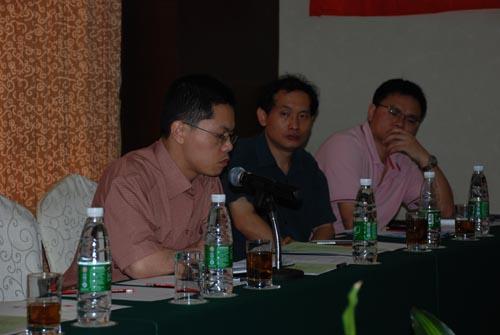 “英语口译”系列课程的主持人仲伟合教授介绍了教育部培育精品课程的理念、我校英语口译系列课程的起源和发展历程、三个口译教学与科研团队的发展计划等。他深情地回顾道,我校的口译课程从70年代就开始起步,在全国的外语院校首先开设口译课,朱道明老师、王桂珍老师、陈建平老师、许罗迈老师、肖惠云老师等都曾上过口译课,并在华南地区开始做会,而且还编写了全国第一部口译教材。这一历史沿革大家一定要清楚、要牢记。可以说,英语口译课程一直都是广外大的特色课程。“法语口译”也被评为省级精品课程。高翻学院2007年还获得大学A类教学团队和B类科研团队。高翻学院与蓝鸽公司的横向合作项目数字化口笔译教学系统已经大体完成,我们还有一个省科技厅口译实验室项目也已初具规模,项目获得了广州市科技成果一等奖。英文学院翻译系与英文学院同时成立,已经超过十年了。1993年我们与英国文化委员会开展合作,培养师资,开设口译课程,向专业化教学发展,从单一的口译课发展成系列课程,从选修课、必修课、方向课,一直发展到成为专业课程体系,同时还有面向全体本科生开设的口译课,其涵盖面广,呈立体化发展趋势。2005年获得广东省教学成果一等奖,2007年获得国家级精品课程(系列)。接下来我们要把精品课程的建设与三个团队的建设统一来抓,建设精品课程的同时,打造一支优秀的团队。