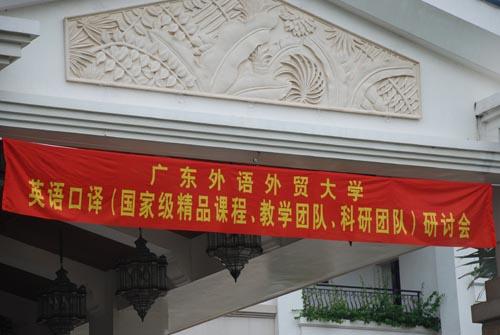 2008年7月4日,广东外语外贸大学国家级精品课程“英语口译”团队建设、高翻学院口译教学团队建设、口译研究科研团队建设研讨会召开。来自高翻学院、英文学院和西语学院的教师、教务处处长刘建达、副处长范正华、科研处长陈伟光、教育技术中心郑长青等三十多人与会。高翻学院口译系主任王丹主持了会议。