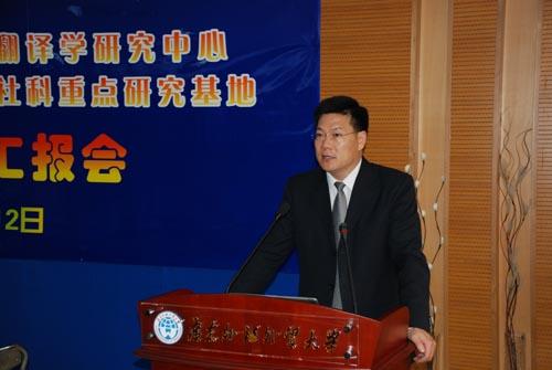 广东省教育厅评估科科长黄黎露宣布会议开始后,隋广军首先对我校及翻译学研究中心的基本情况做简要汇报,承诺学校将一如既往地在基础设施、人员配置、制度保障等方面支持中心建设,加大对高水平科研成果的扶持和奖励力度。