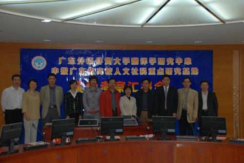 我校副校长隋广军、仲伟合,科研处处长陈伟光,高级翻译学院院长穆雷、副院长余东、党总支书记梁学宏,翻译学研究中心专、兼职研究人员,科研处相关人员出席了会议。