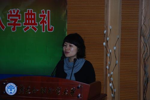 穆雷首先对新生表示热烈欢迎。随后,她介绍了高翻学院的师资力量。她指出,相对于其他学校同样的院系来说,我院教师的师资学历和职称是最高的。我校根据国家发展的需要提倡翻译硕士学位的设立,并成为第一批试点单位,同时也是全国秘书处的所在地,这正是国家对我校教学实力的肯定。同时她还提到,翻译硕士专业学位的教学理念是注重实际操作能力的培养,重在提高口笔译的实际操作能力。除了几门必修的理论课外,课程主要以翻译实践为主。新生要充分利用大学和学院的优质资源,充分利用课外时间进行大量的实践。