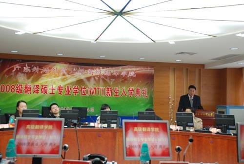 2月24日上午,高翻学院迎来了首批翻译硕士专业学位(MTI)学员。2008级MTI新生入学典礼在北校区第六教学楼同声传译会议室举行。