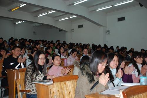 穆雷院长还提到,一般翻译学院的建设需要3到5年,而我们发展非常快,这既说明大学领导的重视,同时也是我们自身实力的体现。高翻学院拥有两个校级科研创新团队,在过去一年都取得很好的成绩。2007年詹成老师还获得校级青年十佳教师和优秀本科导师的称号,另外其他老师也在各项教学、科研活动中获得优异成绩,科研获奖成果居全校之首。