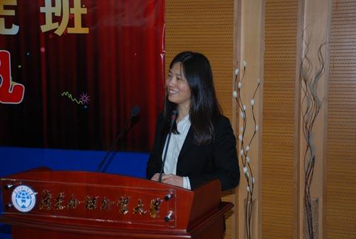 接下来,新加坡高级项目主任高虹作了热情洋溢的发言,她感谢高翻学院的周到安排和对于该合作项目的高度重视。接下来班长梁励明代表学员进行了发言,他对高级翻译学院提供的这次难得的学习机会以及组织他们游览广州的景点,学习中国的文化的机会表示由衷的感谢,并特意制作了五分钟的视频短片、向任课教师赠送礼物以此来表达他们的感激之情。