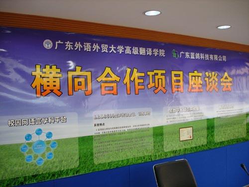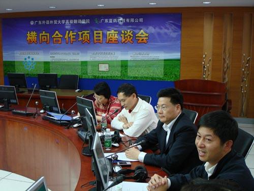 “翻译学科的进一步发展,外语尤其是英语教学的改革,是我们科技公司未来长远发展的契机。”张新华总经理在座谈会上说。他认为,广东外语外贸大学高级翻译学院是一个权威的学术科研机构,而蓝鸽科技发展有限公司能为科研创新提供好的平台。蓝鸽科技有限公司目前开发出了用于系列外语教学、考试信息管理等系列软件。他称,此次与高级翻译学院的合作具有重大意义。希望能进一步合作,利用现有的计算机网络,推出翻译教学更多的产品,配合高级翻译学院,把研究课题做好、做大。