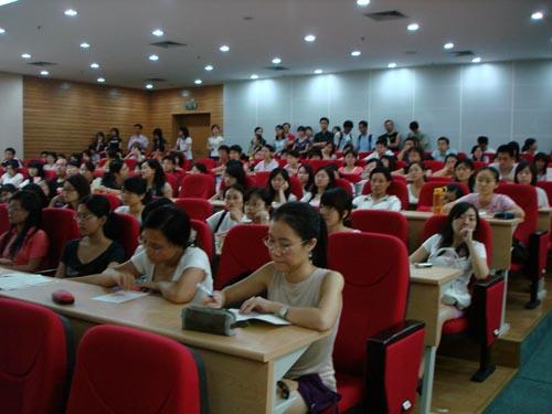 仲教授纯正流利的英语、幽默风趣的语言把现场观众一下子就吸引住了。大家都聚精会神听讲,许多同学拿出纸笔开始做笔记。