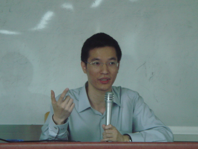 李德超老师的演讲机智风趣,富于启发。他的演讲结束后,同学们纷纷提问。问题主要集中在TAPs局限性方面。大家的普遍反映是TAPs用在翻译教学中的研究较为主观,一个老师讲出其翻译过程,而他的翻译未必是最好的。对于这类问题,李老师的回答是翻译本来就没有统一的标准,不能笼统地说哪种翻译好,哪种不好;而且,老师在教学中的角色要变换,即老师已不再是传统教学中truth-guardian 的形象,而是学习的启发者。在翻译课堂上老师要做的是启发学生如何翻译,所以老师展示其思维过程是让学生了解老师的翻译方法思维,而不必苛求老师的翻译必须完美。