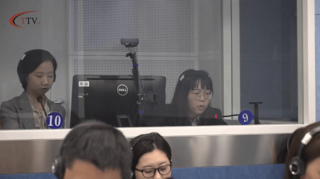 主办方在赛前公布比赛主题“新技术与变革的世界”(Technology and the Era of Change),并在比赛当天提前半小时发放英译中译前资料供选手作准备。比赛音频总长40分钟,其中,中到英、英到中各20分钟,每个队伍的每位选手各传译10分钟进行轮换。