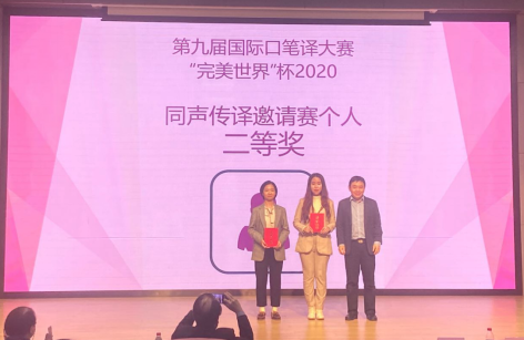 10月11日,第九届国际口笔译大赛“完美世界”杯2020同传邀请赛在北京语言大学线下举办,我院学子孙佳昕荣获本届大赛个人组二等奖(第二名),孙佳昕和王小羽获得团队组三等奖。